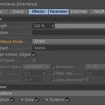 개인적인 생각으로는 보통 inheritance를 사용할때는 한가지 오브젝트의 움직임을 클론화된 다수의 오브젝트가 따라하게 한다거나 텍스트 오브젝트가 순차적으로 정렬되는 식의(차례대로 날아들어와 정렬되는 타이틀 텍스트) 모션. 혹은 두가지 오브젝트가 파티클로 몰핑되는 식의 영상에 주로 쓰이는 것을 많이 사용한다고 생각한다. 하여 Inheritance를 사용할때 알아두어야 할 나름 중요한 몇가지를 정리하려 한다. 내가 아는 범위내에서. Inheritance 의 이펙터 탭을 살펴보겠다. selection : 모그라프 셀렉션이 들어가는 자리다. 자세한 설명은 헬프를.. 중요한 부분은 inheritance mode 에있는 Direct 와 animation이다. 간단히 말하면 Direct : A에 붙어있던 파티클이..
